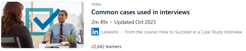 LinkedIn Learning has a numerous modules to help you succeed in case Interviews.